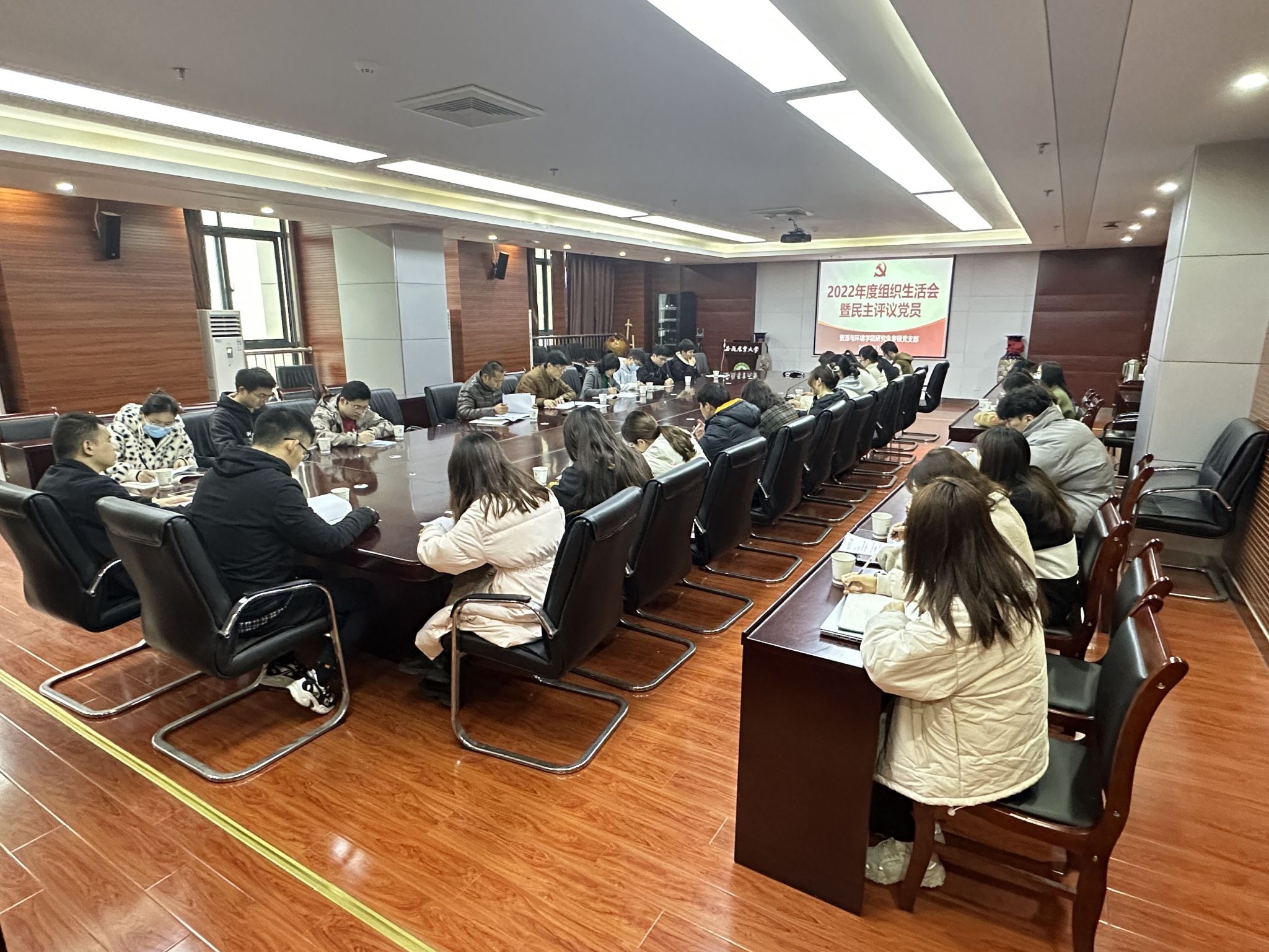 本网讯 根据公司党委统一部署安排,3月22日上午,公司党委常委、副董事长韩军莅临公司指导研究生专硕党支部2022年度组织生活会暨民主评议党员活动,支部全体党员参加会议,资源与环境公司党委负责同志列席会议。