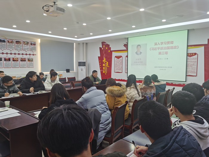 本网讯 12月22日下午,太阳成官网员工第二党支部在中西部工程楼503党员活动室组织全体党员集中学习《习近平谈治国理政》第三卷。
