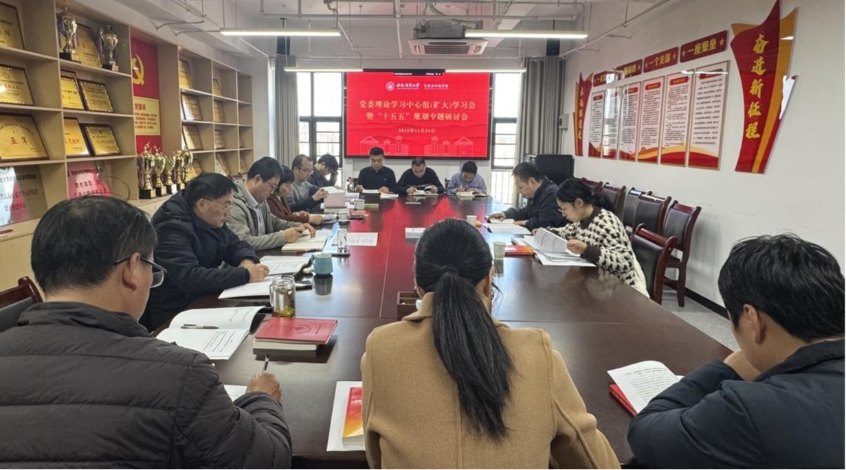 本网讯 11月25日上午,学院召开党委理论学习中心组(扩大)学习会暨“十五五”规划专题研讨会,专题学习党的二十届四中全会精神,深入研究“十五五”规划编制工作,进一步明确工作思路举措,推动全会部署落地落实。党委书记王琼主持会议,公司党委理论学习中心组成员、各党支部书记参加学习。校列席旁听工作组第五组到会指导。