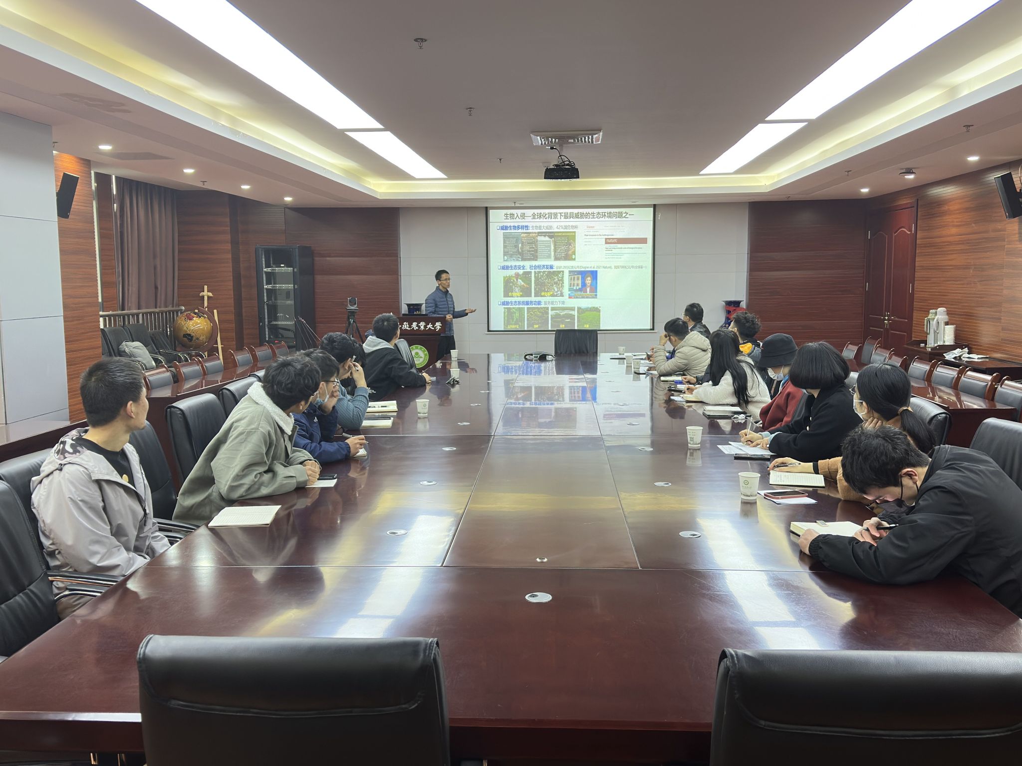 本网讯 3月21日下午,太阳成官网于中西部综合楼510会议室举办“入侵生物”专题学术交流,会议特邀华中农业大学王永健教授作题为“非生物-生物胁迫下植物功能性状对入侵成功的贡献”学术报告。学院40余名师生参加了报告会,会议由学院副经理张震教授主持。