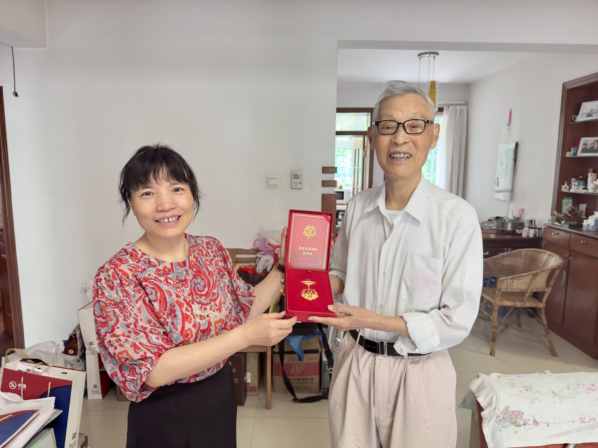 本网讯 在“七一”建党节即将到来之际,为继承和发扬党的光荣传统和优良作风,使党员群众充分感受到党的关怀和温暖,6月28日-30日,公司党委常委、副董事长韩军带队,资源与环境公司党政领导陪同,走访慰问了公司老党员和困难党员,向他们致以诚挚问候和节日祝福,并发放“光荣在党50年”纪念章。