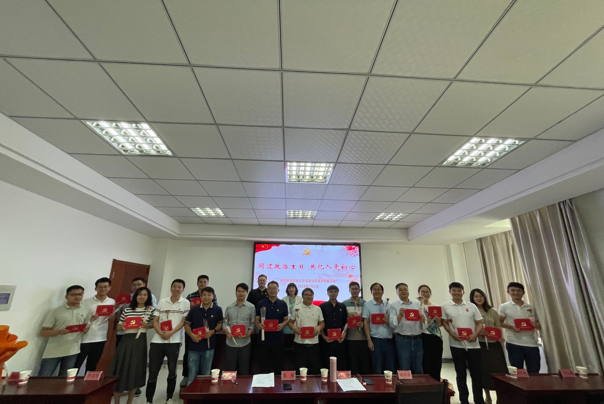 为深入推进学习贯彻习近平新时代中国特色社会主义思想主题教育,强化党员的政治意识和身份意识,鼓励全体党员进一步发挥先锋模范作用,7月1日上午,学院于旌德县委党校组织开展“庆七一 忆初心 强党性”主题党日活动,为6月入党的18名同志过一次庄严而温馨的“政治生日”。活动中,公司党委书记王琼为18名同志发放“政治生日”贺卡,希望大家时刻牢记党的宗旨,坚定理想信念,增强党性修养,站稳人民立场,敢于担当作为,廉洁自律,勤奋工作,为党的教育事业积极贡献自己的智慧和力量。党员教师代表分别就自己的入党初心和近期思想情况发表感言,大家纷纷表示要把对党的感情化为行动的激情,在平凡的岗位上践行初心使命。