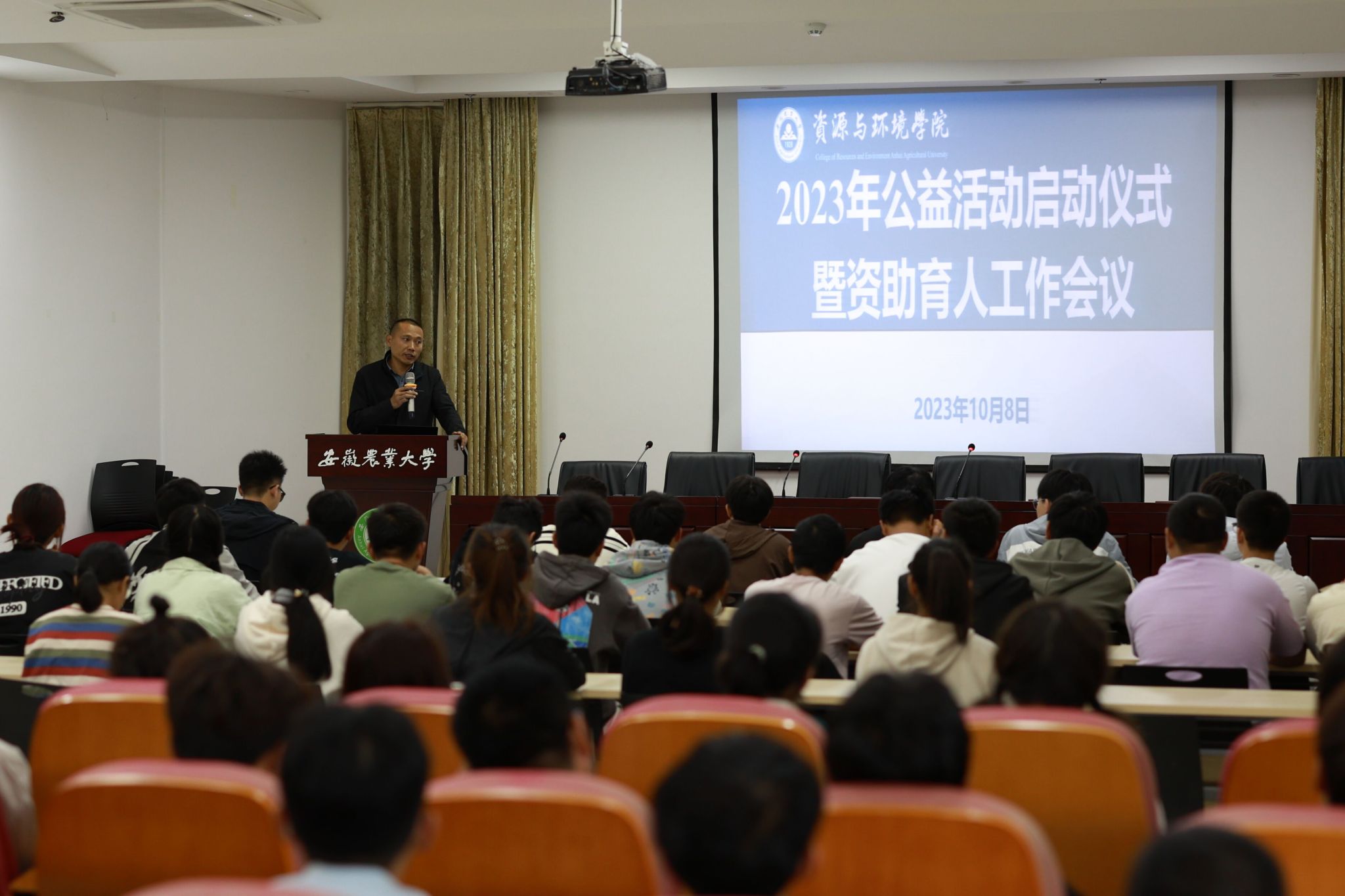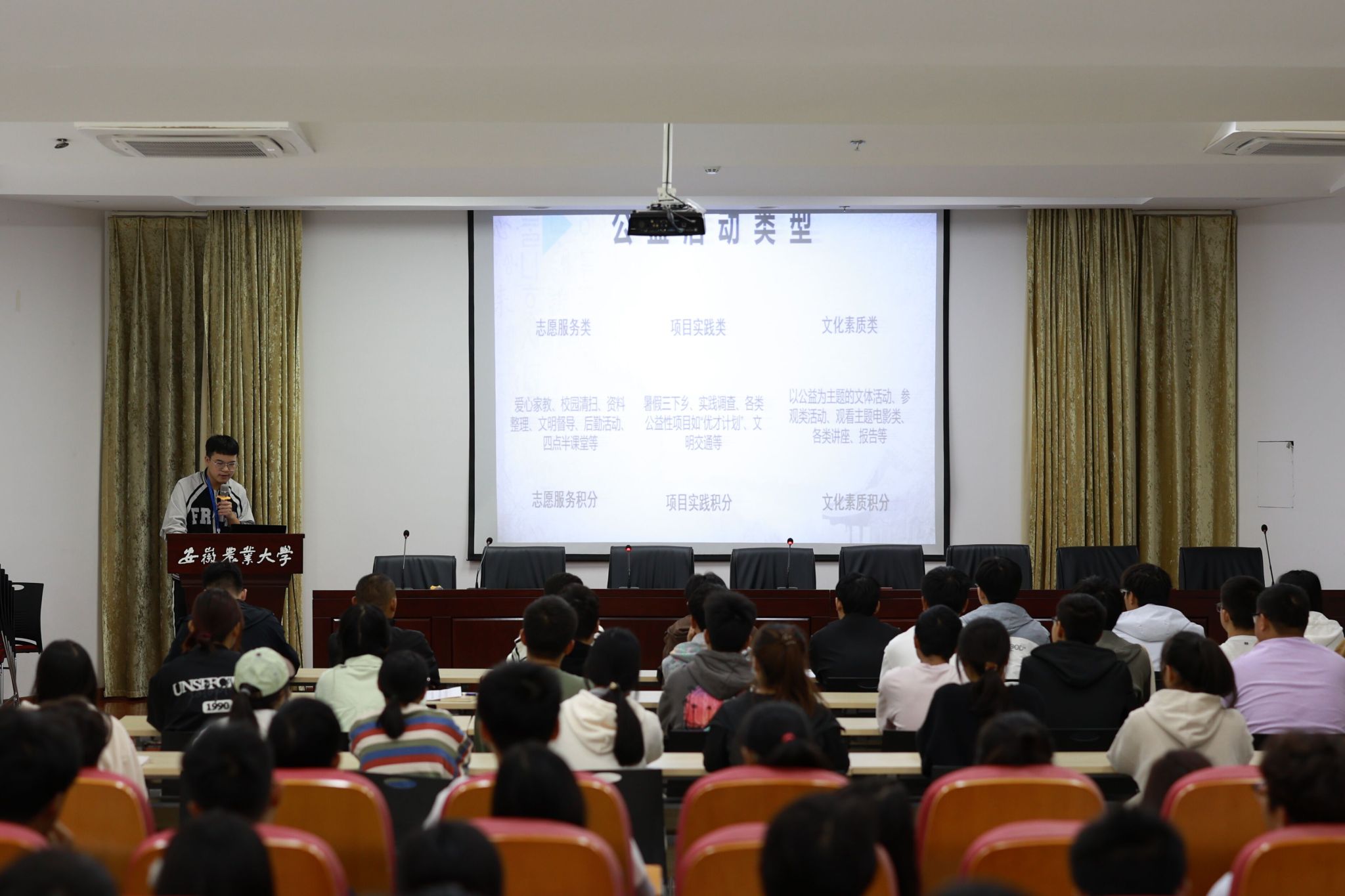 校勤管中心同学和院公益活动部负责人分别向大家介绍了本学年公益活动的考核细则和要求。(作者:汪勇 一审:岳鹏 二审:姚洪章)