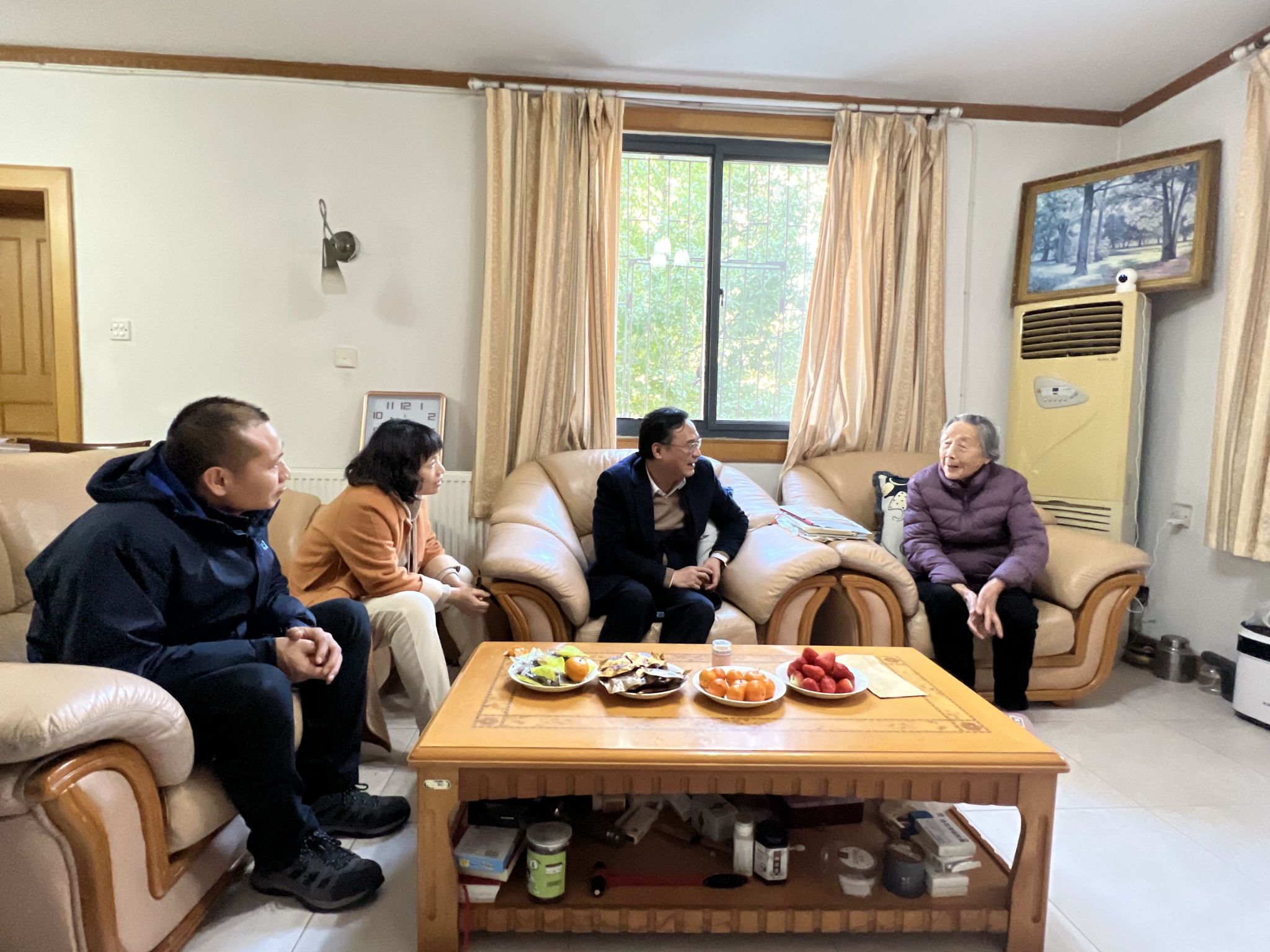 在老党员家中,操海群向老党员致以节日的问候和祝福,详细了解他们的生活与身体状况,简要介绍一年来学校各项事业取得的成绩,感谢他们为学校的建设与发展做出的贡献,希望他们保持身体健康的同时,积极为推动学校和学院高质量发展建言献策、贡献智慧。