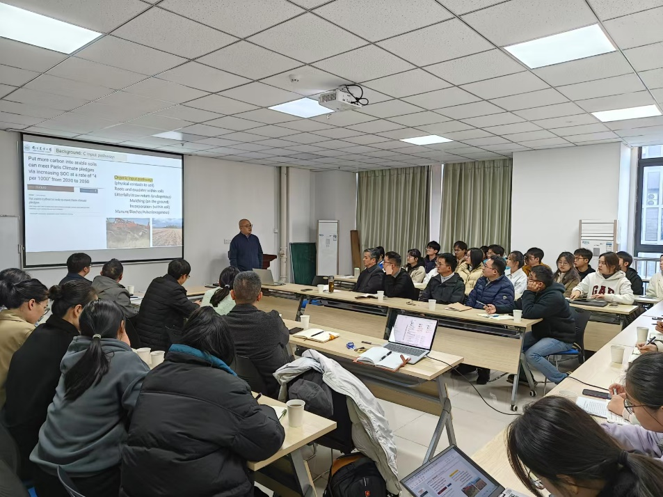会上,张斌教授作题为《土壤有机质形成过程及物理保护机制》的报告,详细讲解了土壤有机质的来源与转化过程,剖析了微生物、矿物和有机质之间复杂的交互作用,重点阐述了物理保护机制对土壤有机质稳定性的关键作用;并结合最新研究成果,分析了土壤团聚体结构与孔隙特性对土壤有机质物理保护的影响机制。