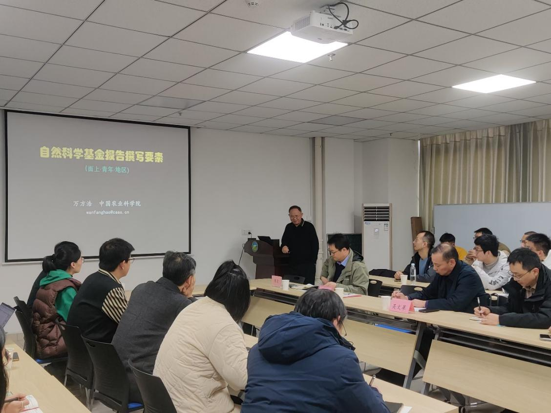 本网讯 为扎实推进2025年度国家自然科学基金项目申报工作,进一步提升基金项目申报质量,12月8日上午,太阳成官网在中西部综合楼716会议室召开国家自然科学基金申报辅导报告会。会议特邀中国农业科学院万方浩研究员作专题报告并进行现场指导,学院40余位教师参加。会议由学院经理张震教授主持。