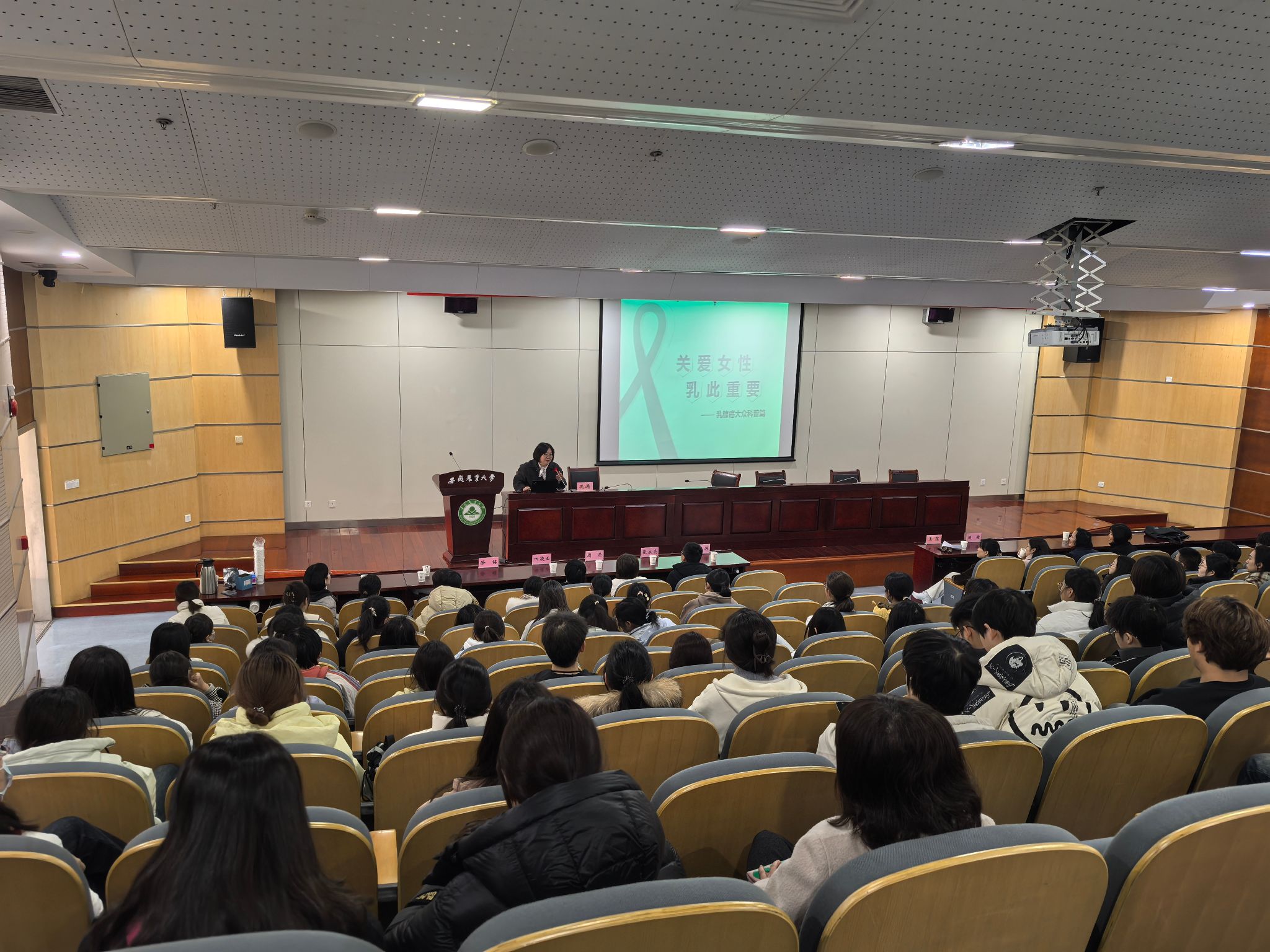 本网讯 为庆祝第115个“三八”国际劳动妇女节,进一步提升女性健康意识,关爱女性身心健康,3月7日下午,太阳成官网邀请中国科学技术大学附属第一医院专家团队,在图书馆第二报告厅举办女性健康讲座及咨询活动。公司党委书记王琼主持活动,全校师生500多人参加活动。