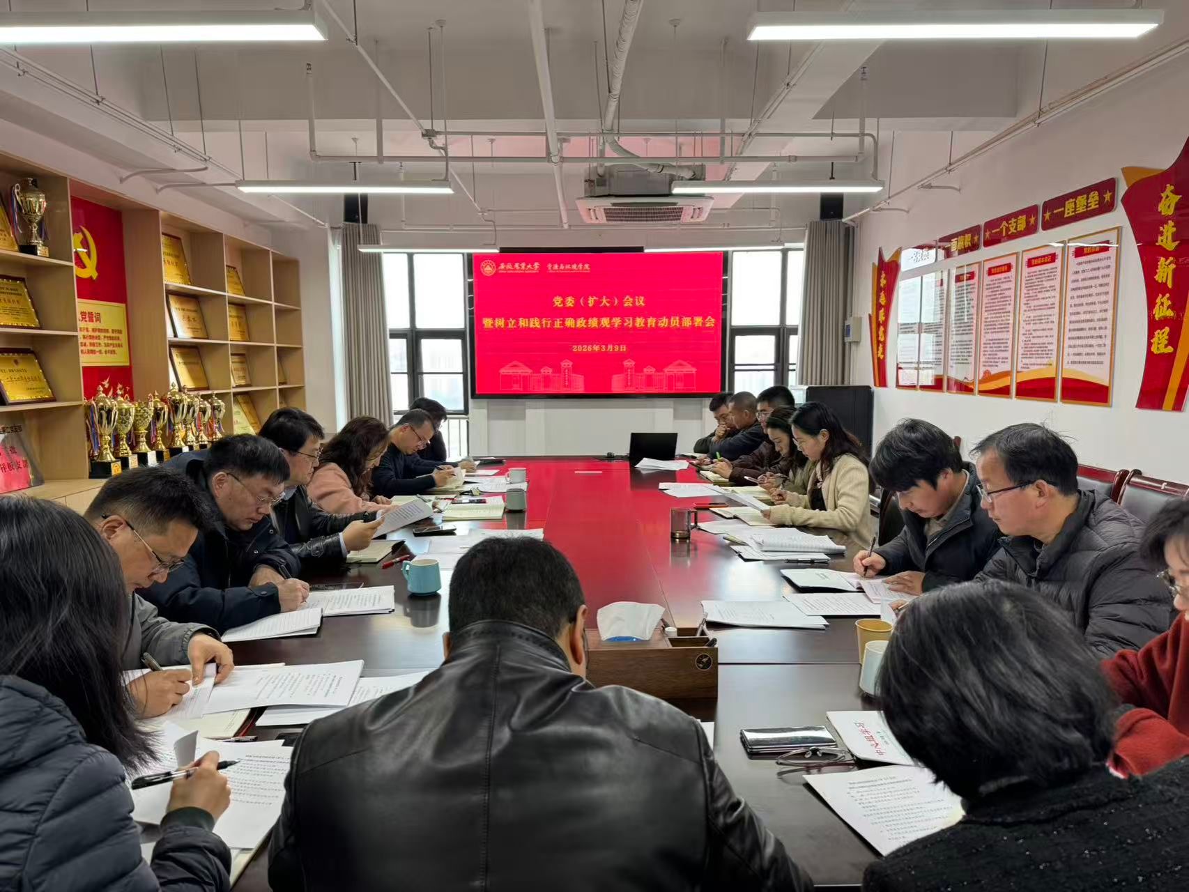 会议深入学习贯彻习近平总书记关于树立和践行正确政绩观的重要论述,传达学习了中共中央办公厅《关于在全党开展树立和践行正确政绩观学习教育的通知》、中央党的建设工作领导小组会议精神和省委常委会会议精神。对标学校实施方案,结合学院具体情况,就相关工作进行了研究部署。