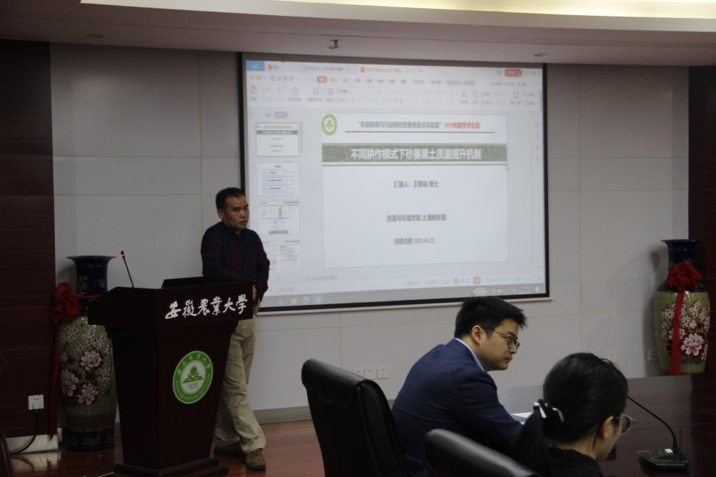 会上,重点实验室副主任叶新新教授全面总结、回顾了实验室2020年度重点实验室在各方面取得的主要进展,并从新型肥料研发、农田生态保育、农田污染修复以及农田环境监测等方面重点介绍了研究团队成员取得的主要科研成果。此外,王擎运、徐微、孙瑞波、孙凯等重点实验室成员分别就不同耕作模式下砂姜黑土质量提升机制、新型多孔混凝土应用于农田尾水处理的效能研究、长期氮肥施用对土壤氮循环功能微生物群落的影响、一株产漆酶真菌的筛选及其在雌激素污染物去除中的应用等方面具体介绍了目前取得科研成果,与会师生进行了广泛的学术交流讨论。