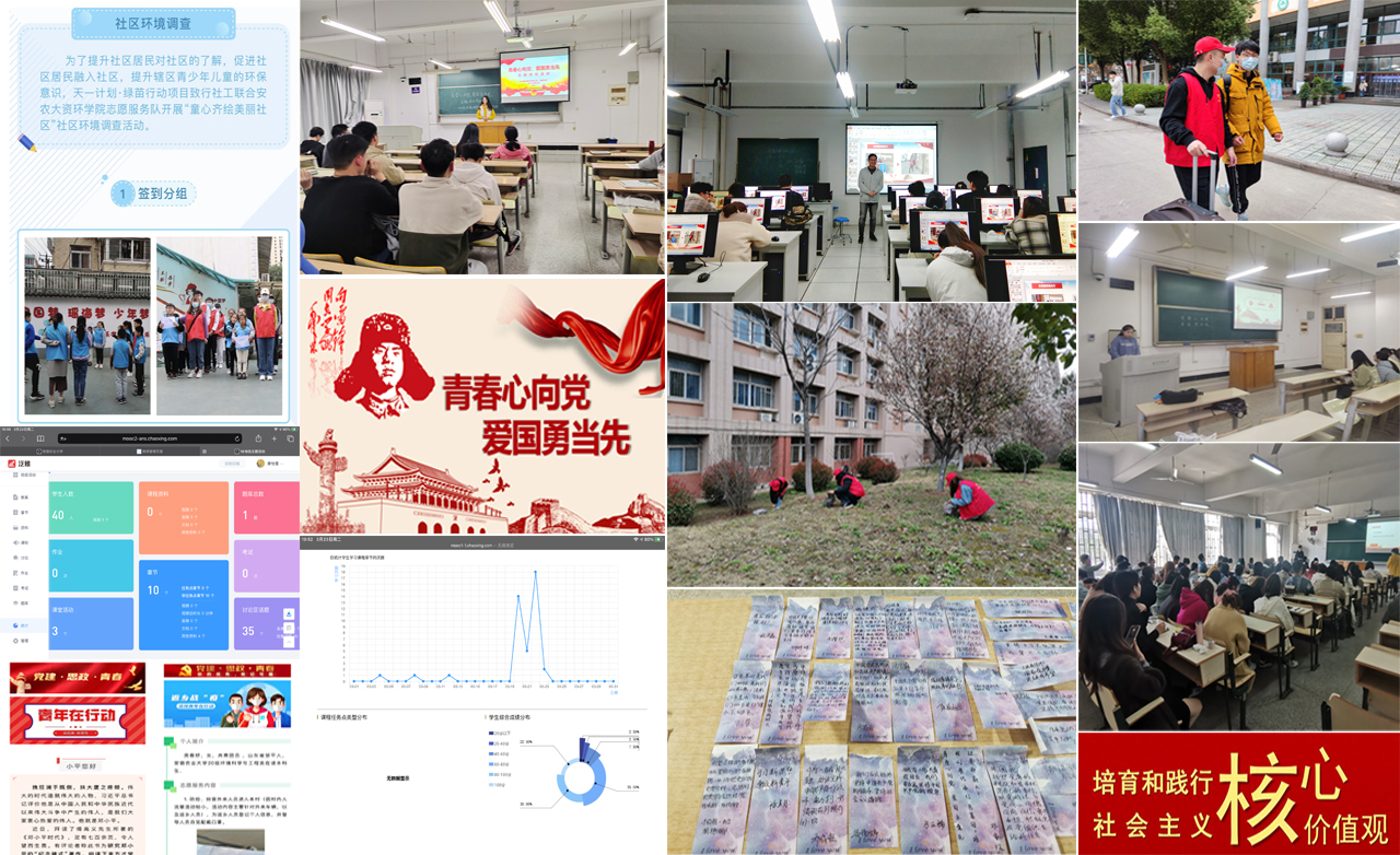 各团支部以党史学习、疫情防控、雷锋精神、志愿服务等为主题,学党史,谈收获;聊实践,话成长;读经典,讲体会。18地信团、19环工、19环科团支部以青年大学习为契机,利用学习强国、超星等app开展线上答题持续打卡并参与话题讨论;18环工1班团支部以PPT讲解、视频学习和志愿者经验分享的形式展开雷锋精神与志愿服务内涵学习交流;18环工2班、3班团支部、19地信团支部、20农资团支部、20地信团支部线上线下同频共振开展理论学习会;19农资团支部开展理论学习并制作学习书签;20环工科123班团支部利用QQ空间开展线上学习接龙,积极传递社会主义核心价值观正能量;20级研究生学硕班团支部通过PPT宣讲,党员、积极分子与团员互动交流等形式学习习近平总书记在党史学习教育动员大会、全国脱贫攻坚总结表彰大会的重要讲话精神,引导研究生培育和践行社会主义核心价值观;20级研究生专硕团支部采用“分开学习+分组讨论”的团课形式,再次重温了社会主义核心价值观24字。