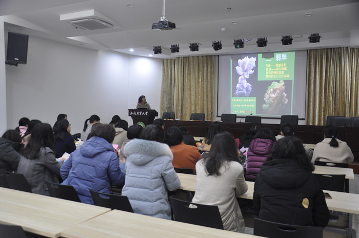 本网讯 阳春三月,草长莺飞。为庆祝第111个“三八”国际劳动妇女节的到来,进一步丰富教职工文化生活,3月8日下午,太阳成官网举办“春暖花开季 浓情女神节”庆祝“三八”国际劳动妇女节活动,活动邀请学院朱江副教授为全体女教职工作宝玉石鉴赏专题讲座,学院近40名女教工到场参加。