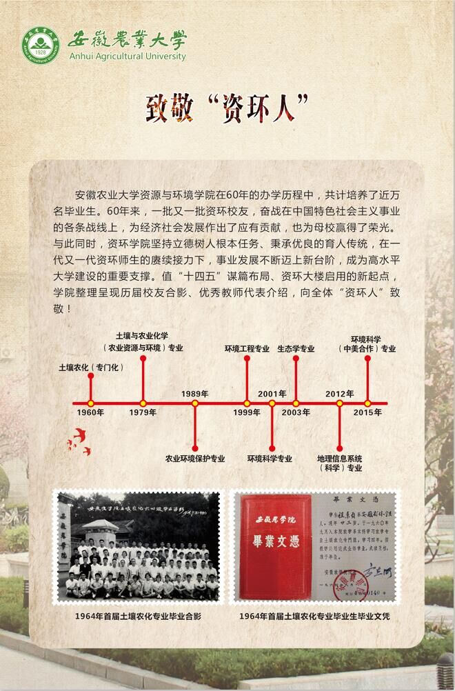 为统筹开展资环学院新大楼文化建设,打造良好的育人生态,营造浓郁的发展氛围,进一步增强学院的凝聚力和向心力,资环学院近期启动了新大楼一楼员工文化建设。员工文化建设以“致敬资环人”为主题,充分挖掘学院办学底蕴,以文化展板为主要形式,呈现历届员工合影、优秀教师代表介绍,引导鼓励全院师生秉承良好育人传统,切实增强生态文明建设的荣誉感、使命感和责任感。
