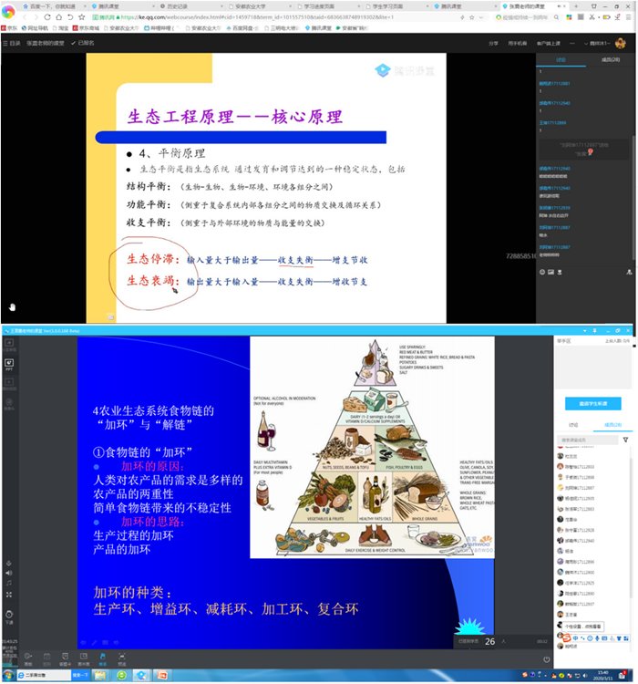 截止目前,生态学教研室承担的本学期所有理论课程均已开展线上教学,任课教师与员工普遍认可线上教学形式。教研室多次通过线上会议、工作群等交流线上教学授课技巧,探讨提升授课效果的方式方法,进一步明确授课教师要提高线上授课时与员工的互动交流,增加提问、讨论等主动参与环节和检查笔记授课要求,切实提升线上教学质量。同时,要求授课教师在员工返校后要组织相应的线上教学质量评测和线下指导答疑。