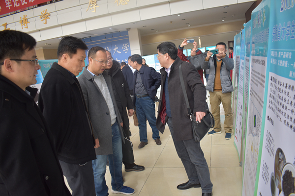 魏先文、孙艳辉、花日茂以及马鞍山生态环境局荣正发局长参观了参赛作品海报,听取各参赛队伍对作品的介绍,孙艳辉等对本次参赛的作品质量给予充分肯定,希望进一步加强生态环境厅与环境类专合委合作,共同推动安徽省生态文明建设。