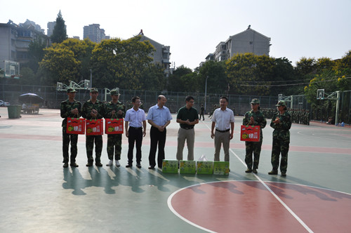 训练间歇,学院领导为新生和教官送上了节日的慰问品。