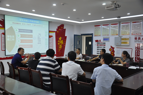 公司党委副书记、副经理张晓伟热情接待刘强一行,并简要介绍了学院办学情况、三风建设、员工教育管理和特色活动等。学院办公室主任、员工第二党支部书记程玉峰介绍了《对话青春信仰》特色党建和员工党员发展和教育管理体系建设等。双方围绕员工党建、三风建设、辅导员队伍建设等进行了交流探讨。