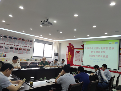 党支部邀请学院副经理谈应权作题为《加强思想建设对创新驱动战略支撑和引领,加快现代农业发展》的专题党课,谈应权从我国农业现代化四化同步基础和支撑,把握现代农业发展的新形势、新阶段、新特征、新挑战等方面阐述了现代农业发展的特征。会议还采取党员备课领学的形式,集中学习了《中共中央关于加强党的政治建设的意见》、《中国共产党党员教育管理工作条例》。