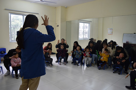 一大早,志愿者们就来到了中心,把精心挑选的玩具和彩泥赠送给中心的小朋友们。在中心专业老师的指导下,大家首先了解了辅助特殊儿童上课的注意事项,之后,全程参与了集体课——韵律活动课的辅助教学活动。课堂上,志愿者们认真跟着授课老师的节奏,协助小朋友完成一系列的教学活动。他们充满爱心和耐心的举动,得到了中心老师和儿童家长们的肯定和赞扬。课后大家都表示:这样的活动很有意义,希望下次还有机会参与。