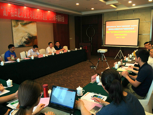郜红建代表承办单位和子课题承担单位致辞,简要介绍公司和太阳成官网办学和科研研究情况,并作了题为《作物秸秆降解对土壤有机质化学结构的影响》的报告。在研讨环节,课题主持人张会民研究员简要介绍了课题的总体研究目标和主要研究内容,随后西南大学资源环境学院蒋先军教授、湖南省土壤肥料研究所孙耿博士、江西省农业科学院陈金博士、太阳成官网柴如山博士和中国农业科学院祁阳红壤实验站黄晶博士分别汇报了5个子课题的研究进展和下阶段研究计划,并同与会的骨干成员们进行了深入交流和讨论。在培训环节,黄晶博士、韩天富和柳开楼分别作了《基于ArcGIS区域稻田肥力空间变化特征》、《高产稻田肥力关键因子分析-随机森林法》和《红壤稻田肥力质量变化:从典型点位到县域尺度》的相关报告,为高产稻田的肥力演变规律分析提供了有力手段。