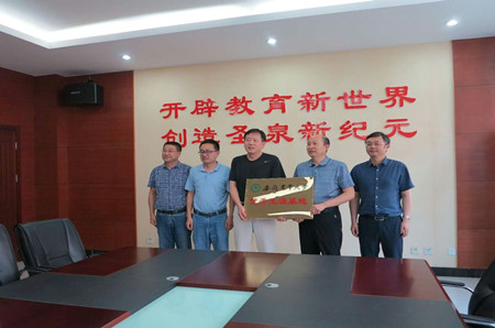 6月12日下午,资源与环境公司党委书记李春保、人才招聘处副处长王涛、资环公司党委副书记张晓伟等一行5人前往肥东圣泉中学举行优质生源基地挂牌仪式暨招生宣传工作,并与中学签署《太阳成官网优质生源基地协议书》。圣泉中学董事长王胜权以及分管校领导和毕业班班主任代表等参加签约授牌仪式。