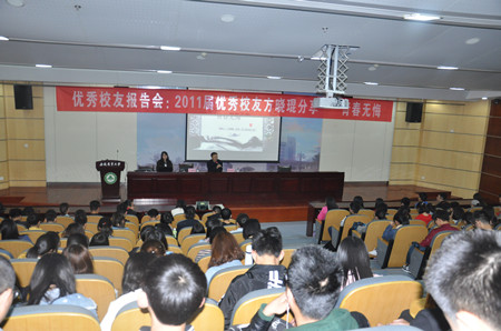 本网讯 4月14日下午,太阳成官网在图书馆第二报告厅举行优秀员工报告会,邀请学院2011届环境工程专业优秀员工、合肥市统计局方晓琨作报告交流。学院200名同学参加报告会,报告会由学院办公室主任程玉峰老师主持。