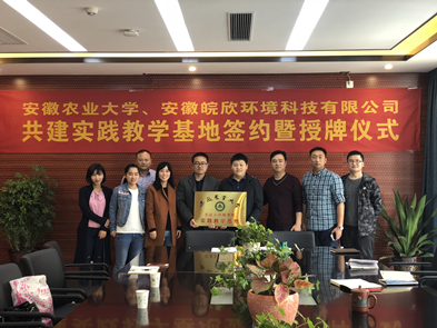 本网讯:为推进校企合作,协同培养创新创业型人才,3月27日下午,资环公司党委副书记张晓伟一行3人前往位于合肥市经开区东湖高新合肥创新中收的安徽皖欣环境科技有限公司调研,签订校企共建实践教学基地协议并举行授牌仪式。