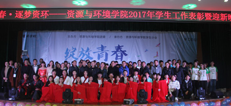 公司党委书记刘凯致辞,他说,党的十九大把生态文明定位为千年大计,作为资环学子,以后大有可为,也必将大有作为。希望大家树立专业自信,以美丽中国建设为己任,在资环学院这个大家庭里成长成才,努力为中华民族伟大复兴作出自己的贡献。在热烈的掌声和欢快的音乐中,颁奖嘉宾先后为学院2017年教学竞赛获奖教师,以及国家奖学金、国家励志奖学金、专业奖学金的员工代表、暑期“三下乡”社会实践优秀团队、志愿服务先进个人、优秀运动员代表、优秀班集体、先进团支部等获奖代表颁奖。