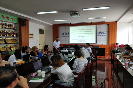 9月23-24日,生态学专业邀请中国科学院植物研究所国家标本资源共享平台专家张明罡博士、范雪女士来校指导在该平台开展专业综合大实习同学的数据分析和成果凝练。张明罡从数据分析、模型构建、软件制图、论文框架等方面给予了悉心辅导。期间,张明罡博士为生态学专业全体教师和研究生做了关于《利用地标化标本构建物种分布模型及木本植物保护优先区规划》的学术报告,在数据分析、数据使用、R语言、Marxan软件、物种分布范围与预测等方面与参会师生进行了交流。今年5月20日至8月25日,2014级生态学专业有10位同学前往该平台开展专业综合大实习。