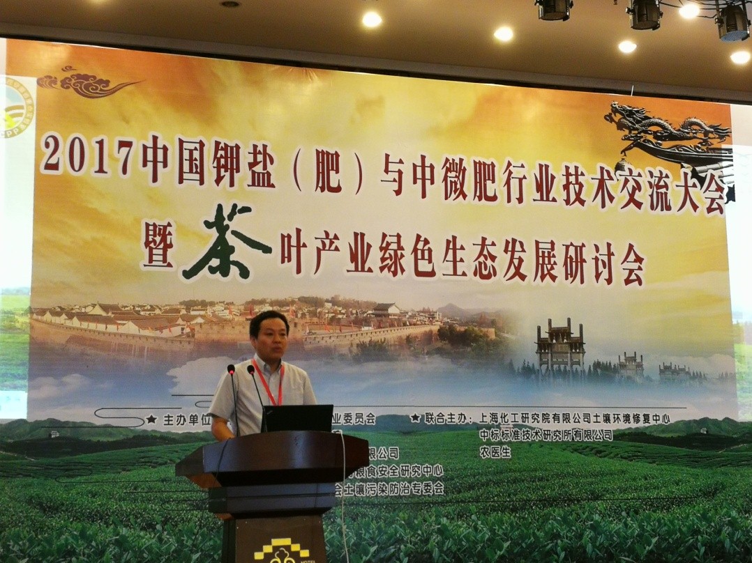 本网讯 6月30日,由中国化工学会化肥专业委员会、钾(盐)肥与中微肥产业联盟主办的2017年中国钾(盐)肥与中微肥行业技术交流大会暨茶叶产业绿色生态发展研讨会在安徽省歙县隆重召开,来自全国土壤、肥料、茶叶等领域的150多名代表参会。太阳成官网经理、农田生态保育与污染防控安徽省重点实验室主任郜红建教授应邀出席,并做“茶叶产地环境与质量安全”的主题报告。郜红建教授分析了安徽省茶叶产地环境质量状况及其对茶叶质量的影响,系统分析了氟在茶树体内的富集规律及其人体健康的影响,受到与会专家的高度关注和一致赞赏。