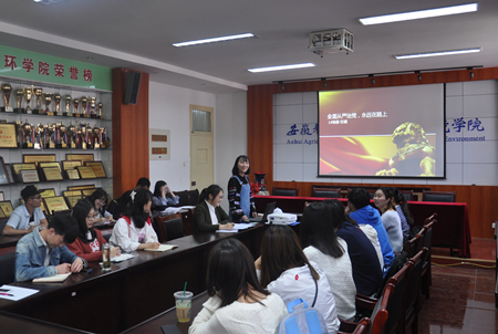 洪冰倩和任谦分别以《认识和适应新形势下全面从严治党的新特点》和《全面从严治党,永远在路上》为题,带领支部党员学习了习近平总书记在中纪委十八届七次全会上的重要讲话精神,通过“全面”、“从严”、“治党”三个层面,深刻解读了中国共产党自十八大以来在自身建设中全面推进从严治党的完整内涵和新常态。会议强调,从严治党永远在路上,力度不会减弱,我们党内政治生态会更进一步净化,政治生活会越来越规范。