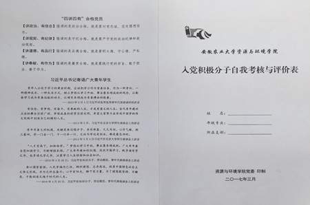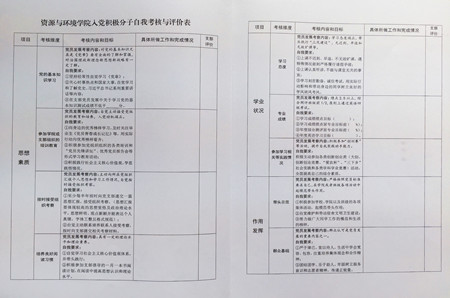 资环学院制定的入党积极分子自我考核与评价体系,是学院构建的老员工党员发展和教育管理“4435”体系建设中关于入党积极分子培养、教育和考察又一重要实践,旨在通过明确的考察、教育和培养内容和要求,采取定量+定性,自我考核+支部评价的形式,全面推进入党积极分子考察标准化建设,为提升党员发展质量奠定坚实基础。(刘怡青 通讯员:程玉峰)
