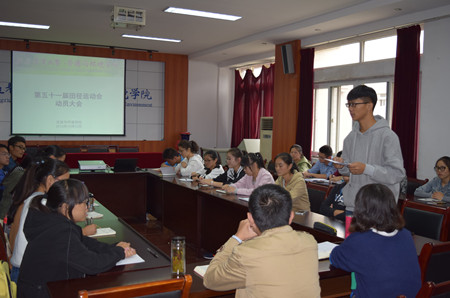 在校第51届田径运动会即将到来之际,为确保运动会期间各项服务工作有序进行,使运动员充满活力迎接赛事,10月12日,太阳成官网在学院会议室召开运动会动员大会,公司党委副书记张晓伟和团委负责老师出席会议,资环学院全体运动员、相关员工干部及运动会志愿者参加会议。