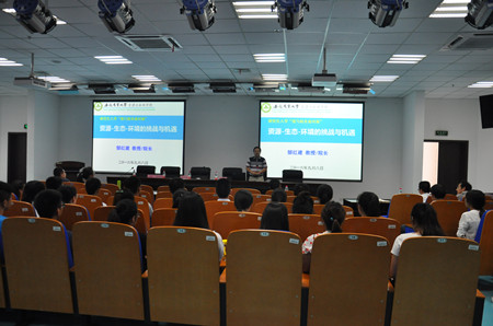 经理郜红建教授对新同学的加盟表示欢迎,并寄语新生要怀揣梦想,抓住机遇,努力学习,提高综合素质和科技创新能力。郜红建同志围绕当前国家在资源环境领域的突出问题、重大战略、重要政策和面临的机遇与挑战,从宏观层面上做了题为“资源、生态、环境的机遇与挑战”学术报告,进一步开拓了研究生新生视野,巩固了对资源环境领域相关学科的意识,拓展了对该领域前沿科技的认识。