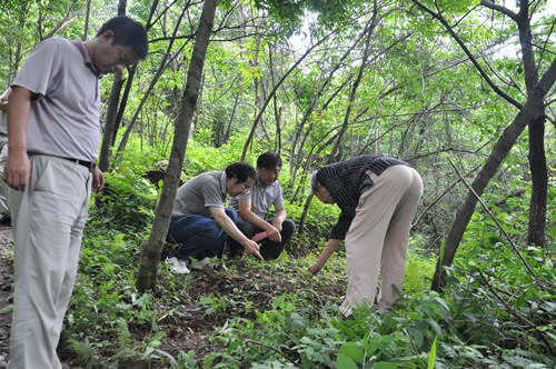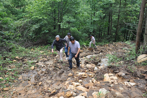 在金寨县马鬃岭林场,宛志沪、蒋跃林、司友斌、张晓伟等在林场负责人陶红军陪同下,前往3处西洋森种植基地进行实地察看。82岁高龄的退休党员宛志沪教授一行,坚持深入生产一线,爬山过坎,克服山路泥泞难行以及不时爬上脚脖的山蚂蝗等困难,仔细了解林下基地管理维护情况,细心翻看每一株参苗,从清沟沥水、及时补施菌肥和遮阳除草等方面给予种植户一一指导,其严谨的科研态度和心系群众的为民情怀,让现场每一个人为之动容。