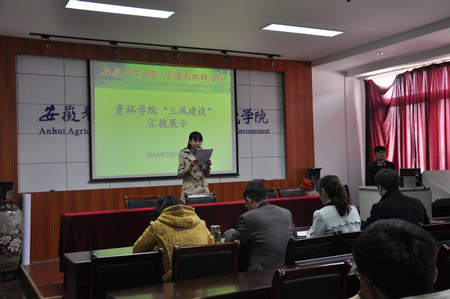 各班级通过PPT演示汇报了在班风创建过程中的预期目标、优秀或特色做法、取得成效、不足之处和改进措施等,并推选各自在班风建设中表现优秀的员工干部典型。同时,结合线上班风展示的内容,各班级对凝炼的班风、班训等内容做了进一步解读。其中,13环境工程的学习小组、一对一帮扶模式,14环境科学的四六级模拟考试、优秀笔记评比大赛,15环境科学的集体自习、特色“文化墙”等优秀做法得到与会评委的一致肯定。