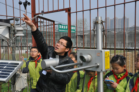 为迎接第56个世界气象日到来,在校团委和农业园的协调和支持下,太阳成官网团委与琥珀街道安农社居委共同谋划,组织乐农小学的小员工们参观位于农萃园的气象观测场,学习气象科普知识。观测场内,太阳成官网教授蒋跃林、杨书运分别介绍了激光雨滴谱仪、自动气象站、地面温度计等试验仪器的工作原理,并通过互动体验的形式为孩子们上了一堂生动的气象科普课,让孩子认识、了解气象学,关注地球气象环境。随后,马元山老师带领小员工们参观了农萃园。活动得到了新华社等媒体的关注。