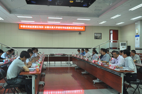 中国农科院成果转化局局长袁龙江、公司副董事长姚佐文出席签约仪式。中国农科院区划所所长王道龙与资环学院经理郜红建签署合作协议。区划所副所长徐明岗、周清波,相关职能部门负责人和科研团队首席科学家,以及公司科技处、校办负责人和资环公司党政领导、相关学科负责同志参加签约仪式。签约仪式由中国农科院区划所党委书记陈金强主持。