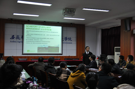 11月24下午,新西兰皇家农业科学研究院罗加法教授应邀来公司,在学院学术报告厅作了题为《新西兰奶牛场废水和养分管理》的学术报告。环境、生态、土壤、植物营养及气象教研室部分老师和研究生60多人参加了报告会,报告会由副经理马友华教授主持。