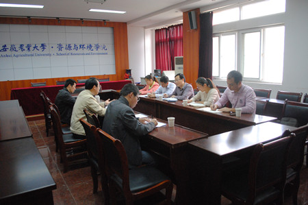 10月16日下午,安徽省农村综合经济信息中心(安徽省农业气象中心)副主任琚书存率农业气象科、专业服务科专业人员一行五人,来资环学院考察交流。花日茂经理及气象教研室、植物营养教研室相关人员参加交流与研讨。