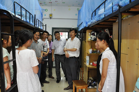 5日下午,公司党政领导带领新生辅导员深入员工宿舍,看望慰问新生。每到一间宿舍,领导们都细致地了解员工的籍贯和所学专业,亲切地询问他们“是不是习惯?”、“有没有困难?”,并仔细叮嘱新同学要注意饮食卫生、注意安全、防火防盗,尽早与大家熟悉起来,尽快转变角色适应老员工活等。看到有的宿舍新同学刚来就把宿舍卫生整理地很干净、环境布置地很整齐和同学关系相处地很融洽,学院领导很高兴,及时地给予肯定,并勉励大家再接再厉,生活上要学会相互包容和关心。对同学们关心的问题和提出的一些建议和意见,学院领导耐心进行解答。