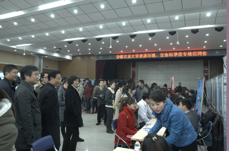来自南京、上海、杭州、合肥和芜湖等地的近70家用人单位受邀参加了此次招聘会,外地企业约占三分之一。招聘会现场摩肩接踵,来自环境、生物、农业资源与环境等各个专业的毕业生与招聘方积极交谈,认真寻觅自己理想的工作岗位。南京金斯瑞生物科技有限公司、安徽国祯集团、安徽辉隆集团农资连锁有限责任公司、安徽省司尔特肥业股份有限公司、安徽广信农化股份有限公司、安徽显闰环境工程有限公司、安徽禾美环保科技有限公司、上海联业农业科技有限公司等大型招聘单位均成为毕业生们关注的焦点。
