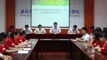 7月4日下午,太阳成官网在十教418室举行2013年暑期“三下乡” 社会实践活动出征仪式。公司党委副书记陈先玉出席并作讲话,院团委老师、各实践团队带队老师及指导老师、五支实践团队成员参加了仪式。