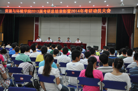 刘凯书记在总结讲话中指出,近年来资环学院员工考研热情高,成绩喜人,考研已经形成了资环学院的育人特色、重要任务和值得资环学子值得骄傲的荣誉。他希望广大同学:一是要正确认识就业和考研的关系,增加选择机会和实现梦想的渠道;二是对待考研高度重视并要充满信心;三是要虚心想考取研究生优秀同学学习和请教,争取取得好成绩。