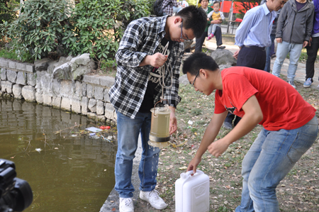 本次活动同学们深入琥珀社区,开展了悬挂环保标语,宣传环保理念;分发环保常识宣传单,倡导绿色生活;放生小鱼苗,共建美好社区等活动,并发挥专业优势采集、分析小区景观水样。一幅幅精心制作的环保标语成为一道道美丽的风景,一张张节能环保小常识单页传递着青春责任的“正能量”,一尾尾小鱼为社区带来了和谐与生气。社区领导和工作人员与70余名入党积极分子共同参与了此次活动,活动得到了合肥广播电视台等媒体的关注和报道。