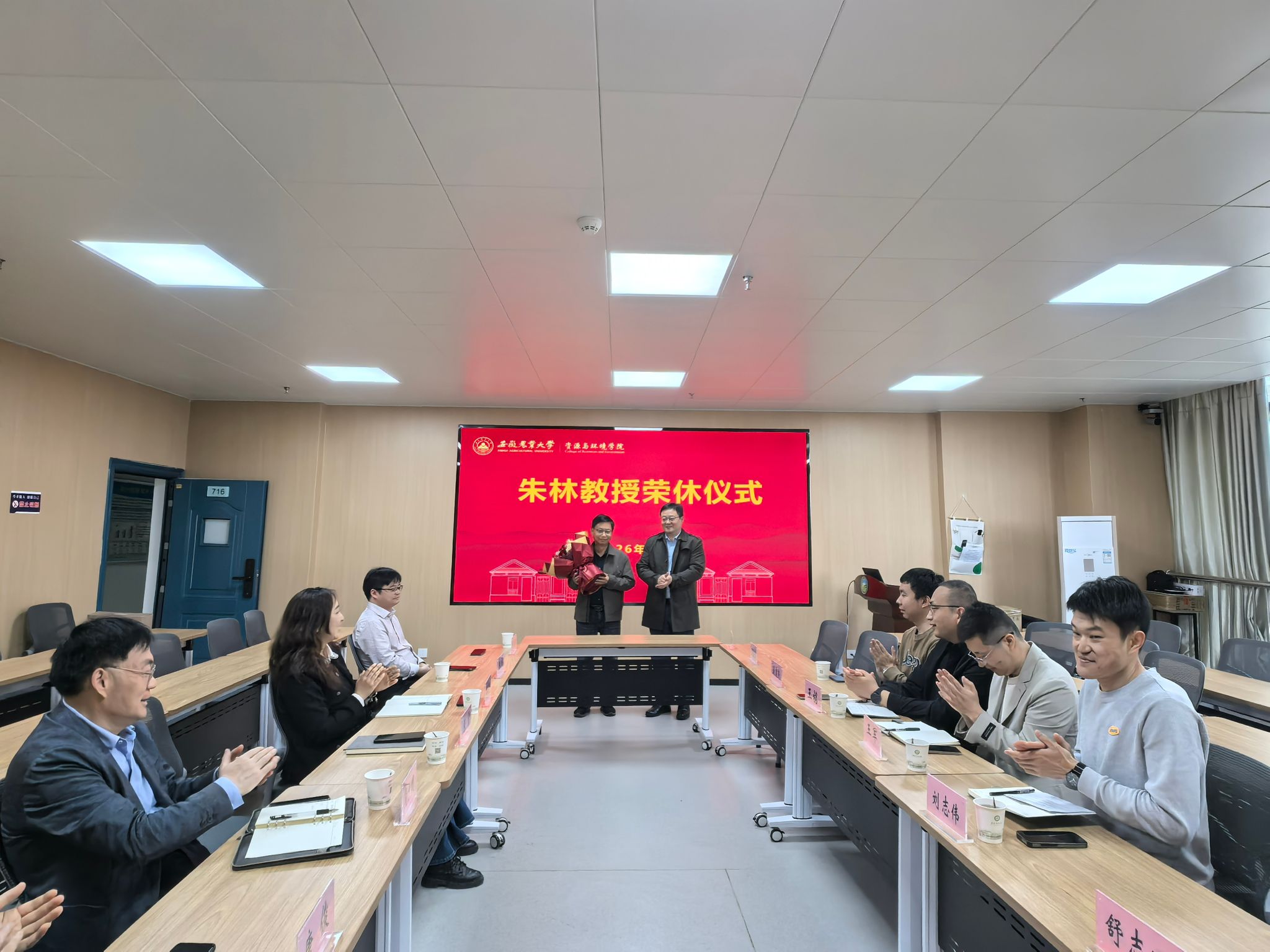 座谈会期间,学院为朱林教授举办荣休仪式,向其数十年深耕教育一线、为学院发展和人才培养作出的贡献致以崇高敬意。荣休仪式与青年教师座谈有机融合,既是对老教师坚守初心、践行使命的深情致敬,也搭建起新老教师沟通交流的桥梁,推动优良教风与育人使命薪火相传。