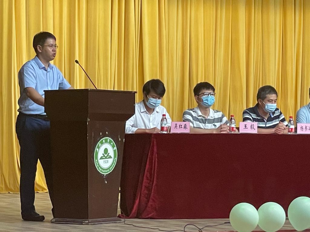 农药学系主任王毅教授作为教师代表发言。他以简单的符号作喻提出了几点问题和建议并为2021级新同学送上祝福。他谈到:本科阶段主要注重专业基础教育的“句号教学”,给员工传授正确无误的知识;硕士阶段主要强调专业知识与能力提高的“逗号教学”,提出问题,指明方法,把结论留给员工自己去完成;博士阶段旨在突出创新素质培养的“问号教学”,通过问题引导员工独立发现与解决更多更难的新问题,把问号拉成惊叹号,得出前人没有或与众不同的新结论。