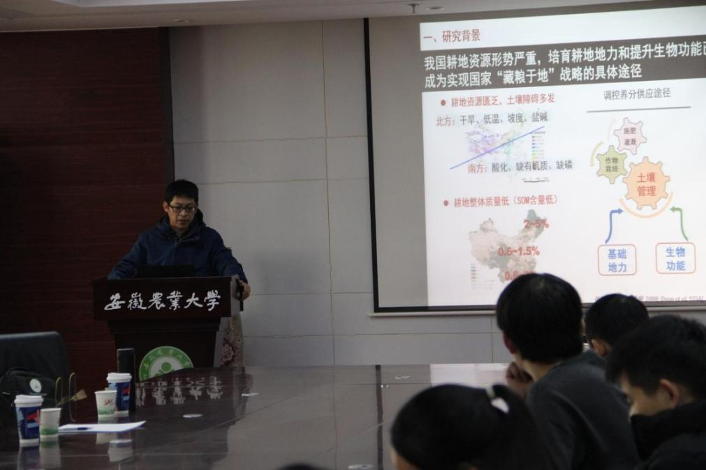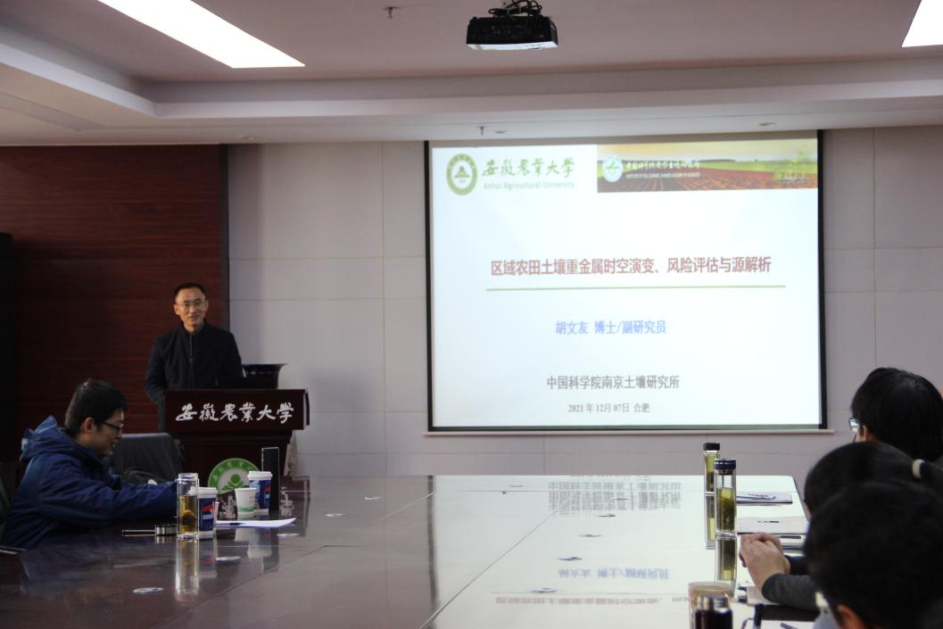 本网讯 12月07日上午,中国科学院南京土壤研究所蒋瑀霁研究员和胡文友副研究员应太阳成官网邀请进行学术交流与指导,并在中西部综合楼510会议室分别作了题为“红壤团聚体碳氮磷转化的生物学过程:线虫—微生物互作机制”和“区域农田土壤重金属时空演变、风险评估与源解析”的学术报告。会议由叶新新副经理主持,公司师生参加了报告会。
