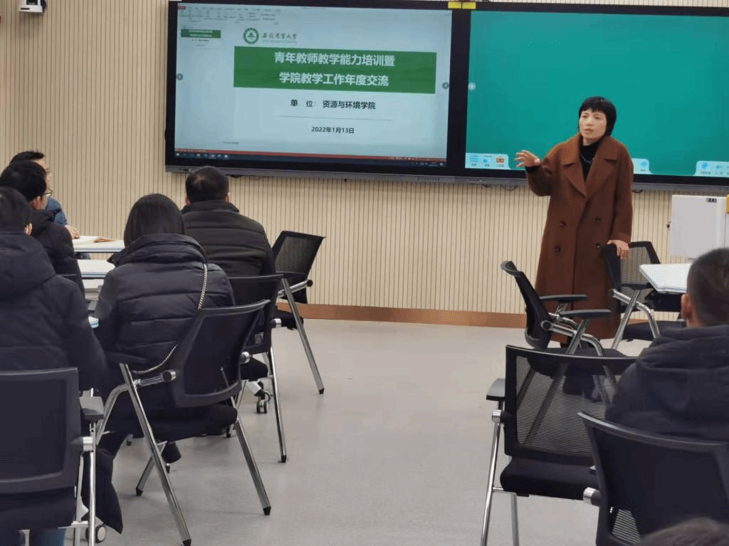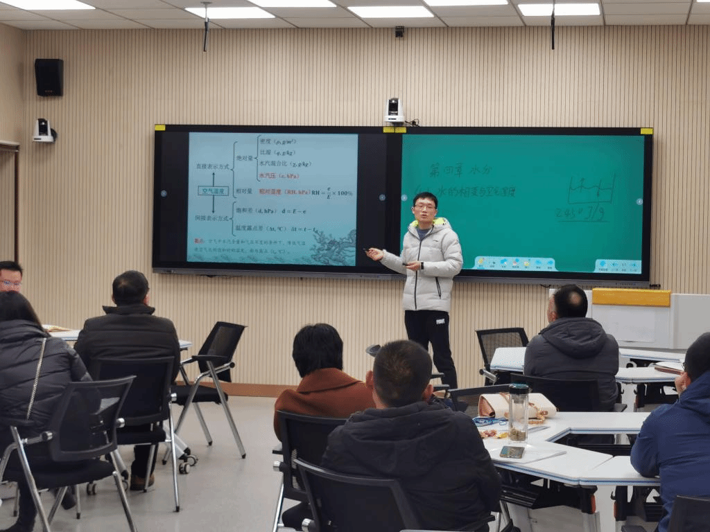 会议邀请了校第十一届教师教学竞赛中级及以下组一等奖获得者、安徽省首届教师教学大赛三等奖获得者林学与园林学院丁文清老师进行了教学经验交流。丁老师围绕教学大赛的评分要素,重点讲解了教学理念转变、课程思政融入、教学过程丰富化以及教学考核多样化等方面,强调了雨课堂、超星等新媒体教学软件在课堂教学中的重要作用和使用方法。交流会上,大气科学系新进教师吴东博士做了试讲。