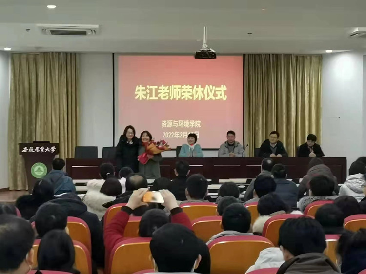 会上,学院为退休教师朱江举办了荣休仪式。(朱晓晨 通讯员:岳鹏)