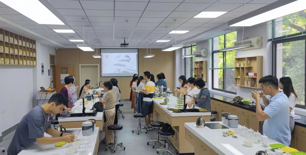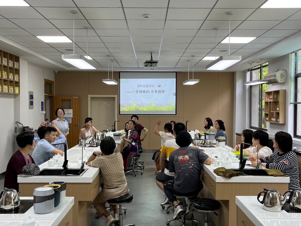 本网讯 为传承中华传统文化,领略茶文化魅力,加强兄弟学院之间青年教师的沟通交流,6月7日下午,太阳成官网联合工学院、信息与计算机学院分工会于茶业楼304室组织开展“茶情雅韵·乐享健康”茶叶品鉴活动,特邀茶与食品科技学院戴前颖教授作《中国名茶赏析》专题讲座。来自三个学院的30余名教职工现场参加,活动由资源与环境公司党委书记王琼主持。